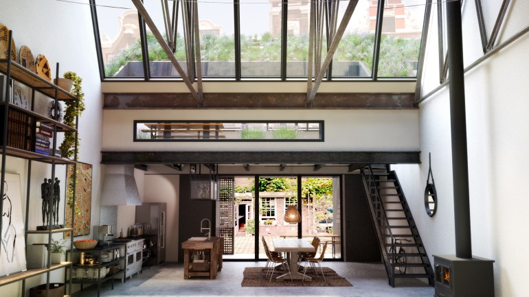 e Tandwielenfabriek (the GearWheelFactory) is a project-development by Buro Amsterdam. It is an old factory, right in the middle of the old city-centre of Amsterdam, The Netherlands. Buro Amsterdam has created 12 appartments with an über-cool industrial loft vibe. Double-volume ceilings with lots of glass filling the spaces with abundant daylight. Outside terraces on the ground and upper floors for a relaxed lifestyle with summer bbq’s and sundowner drinks.
