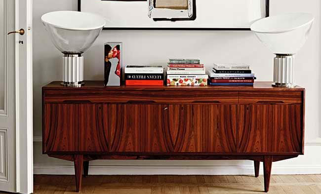 Vintage sideboard in the Swedish home of Evelina Kravaev Söderberg, head of design at HM – via Elle Decor